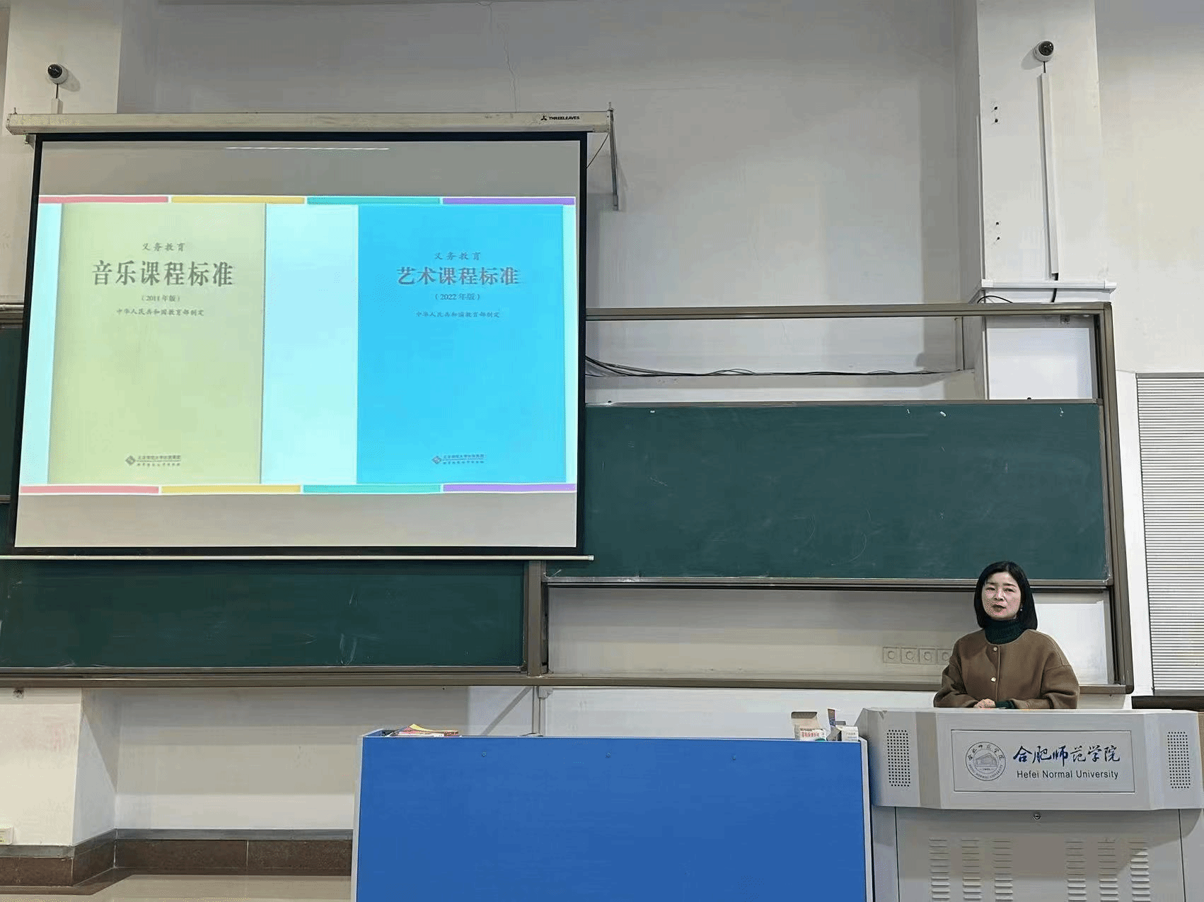 本次讲座主讲人刘双宁老师从《义务教育艺术课程标准》音乐学科标准以及音乐示范课评价标准两方面,对核心素养、学段课程目标、学业评价、优质课说课及上课评价量表几个方面进行了深入浅出的解读。在讲解中,刘双宁老师还紧密联系中学音乐课堂教学实际,通过观看优质课视频片断和参与体验式教学方法,让在场师生更直观地了解新课标背景下初中音乐示范课的具体教学实践,精彩的讲授赢得阵阵掌声。