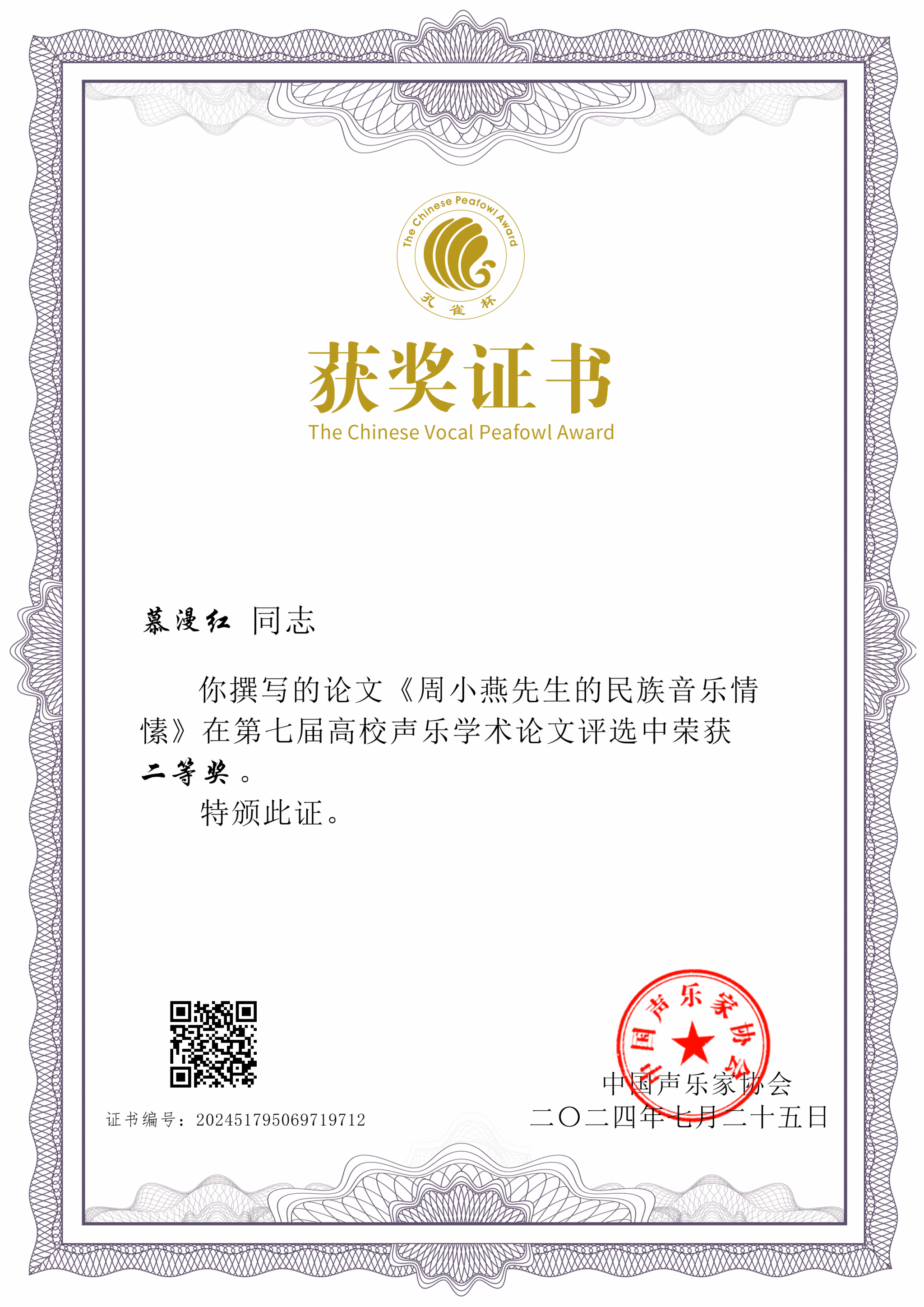近日,备受关注的“第十届孔雀杯高等艺术院校声乐展演暨第八届高校声乐学术交流活动”日前在广州落下帷幕,公司师生在近4000名展演选手中表现突出,在参加的3个组别展演中均取得不错成绩,其中慕漫红获“高校声乐学术论文”教师组二等奖,李韵涵获“综合师范院校本科生美声组”优秀奖(指导教师谢梦柯、苏丽丽),李凯达获“钢琴艺术指导员工美声组”优秀奖(指导教师叶蕾),威廉希尔williamhill获颁优秀组织奖。