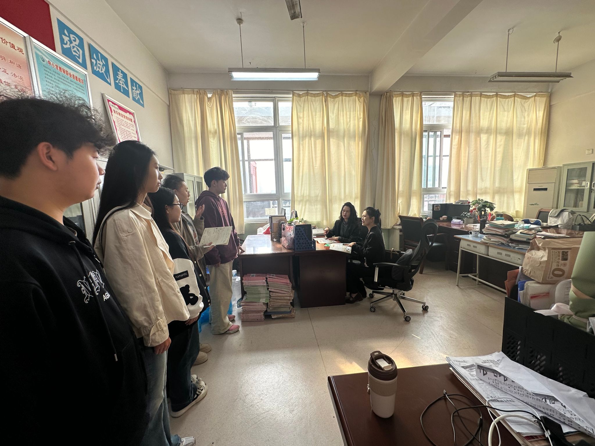 为了更好地了解实习生的实习情况,谢梦珂于11月4日赴实地看望正在四十六中学实习的六名员工,并认真聆听他们的课堂教学,对实习生的教学实践进行了细致的指导,并与校外指导老师沟通交流。