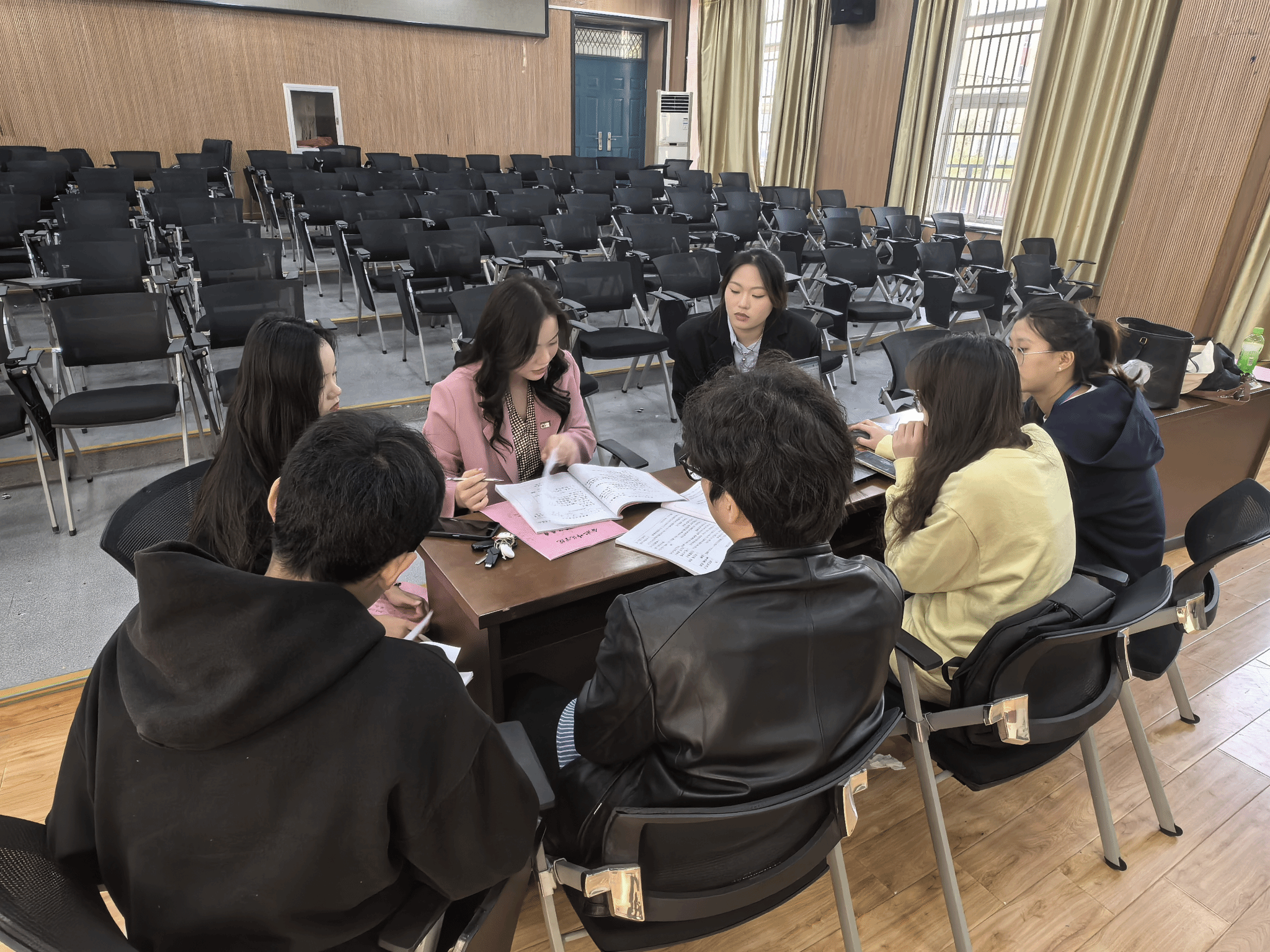 潘怡指导实习生填写实习手册