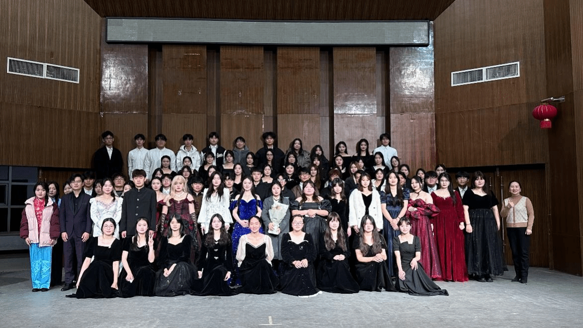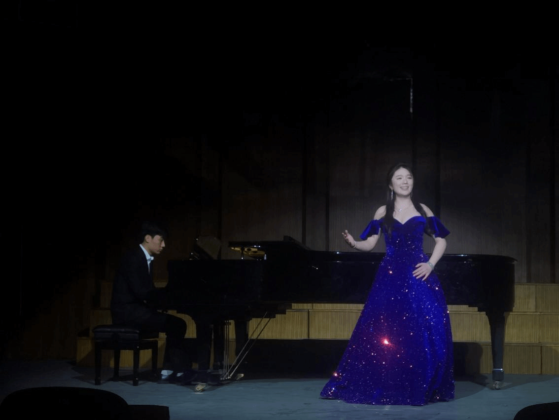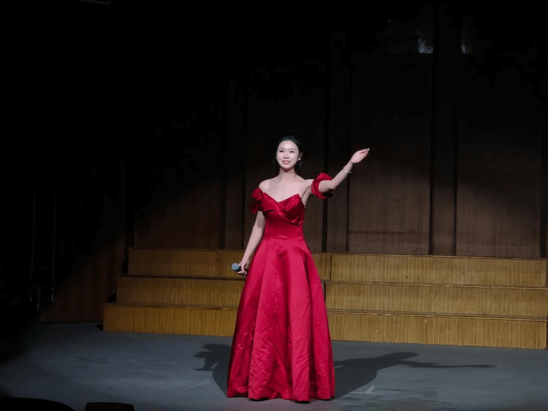 第二篇章由李韵涵同学带来的《沁园春·雪》进入主题,《浏阳河》、《忆秦娥·娄山关》等歌曲表达了对新中国第一代领导人毛泽东主席的深切缅怀,新时代学子将以实际行动听党的话,不忘初心跟党走,扬帆远航新征程。第三篇章《十送红军》、《交出八路军》等经典重唱曲目让同学们沉浸式的置身于那个时代,感受那个时代的艰辛与不易。第四篇章《灯火里的中国》、《如愿》将音乐会推向高潮。一曲由陆伟老师创作的《皖美乡村》表现了舞台实践课程的改革创新,员工们由课堂走向田野,助力服务美好乡村,展现当代老员工的风采。最后,音乐会在精心安排的彩蛋——音乐剧《后妈茶话会》中落下帷幕。这首作品需要集美声唱法、流行元素、音乐剧感觉与一体,对演唱者的要求极高,也是声乐舞台表演训练的成果展示。