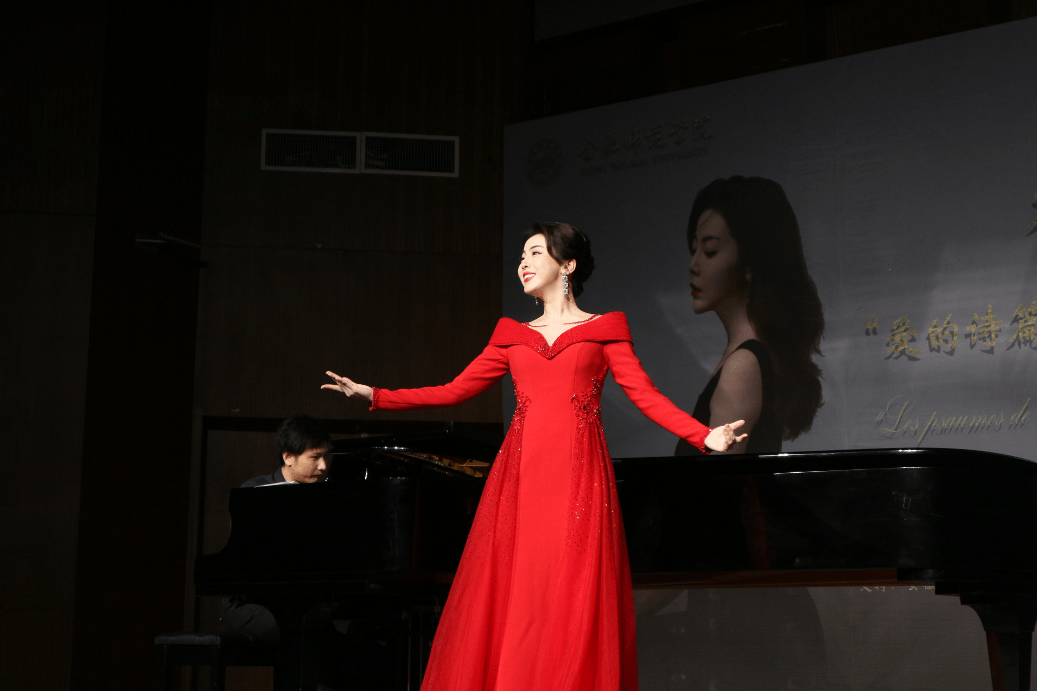 4月29日19:30分,威廉希尔williamhill蔡枫丹老师的“爱的诗篇——中法艺术歌曲专场音乐会”在威廉希尔williamhill音乐厅拉开序幕。本场音乐会由合肥市音乐家协会、威廉希尔williamhill主办,安徽省音协声乐委员会、安徽省音协青年工作委员会协办,并获得安徽省音乐家协会的大力支持。