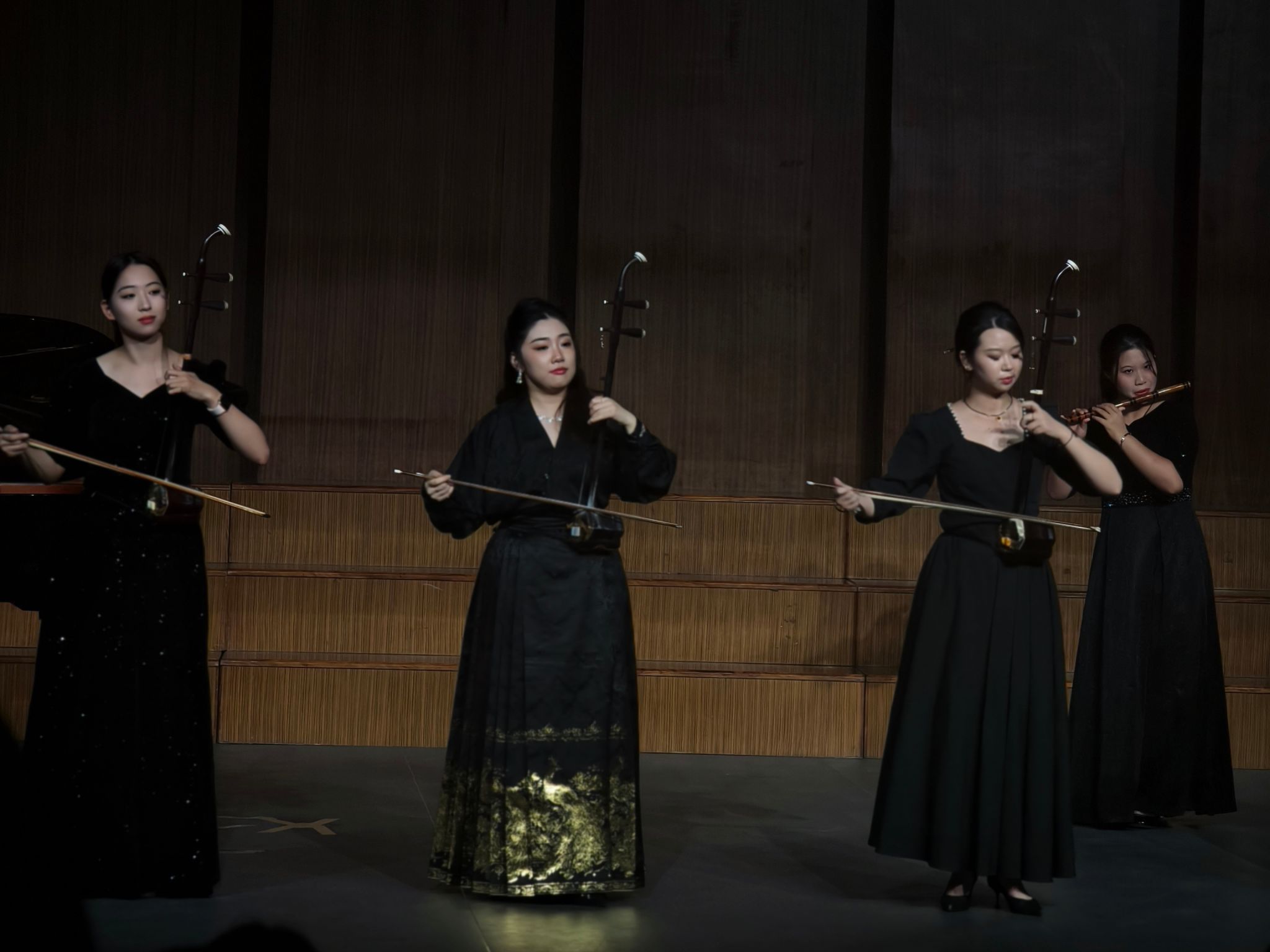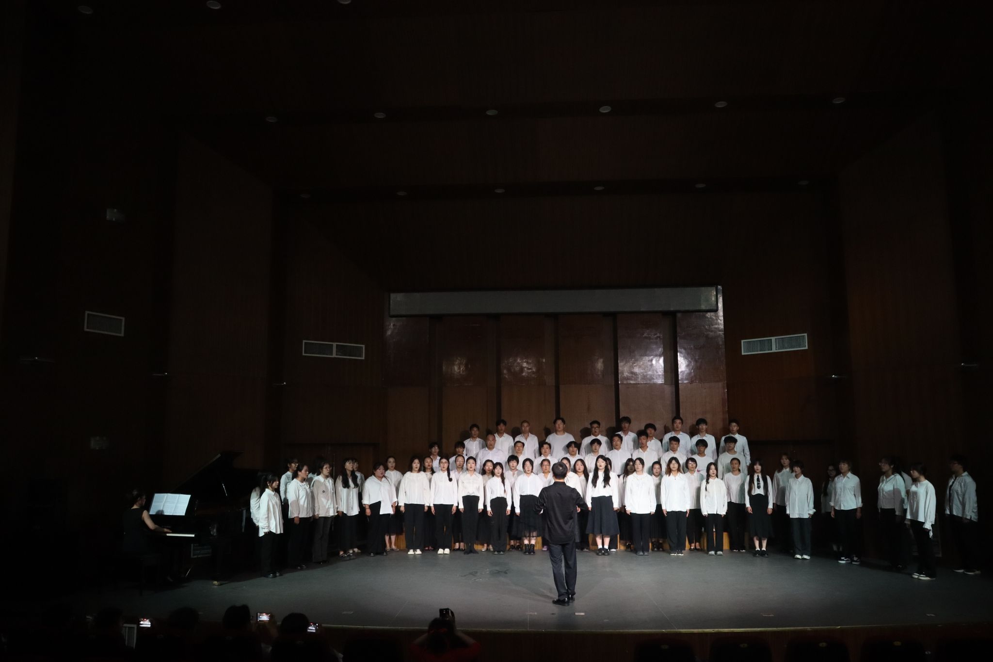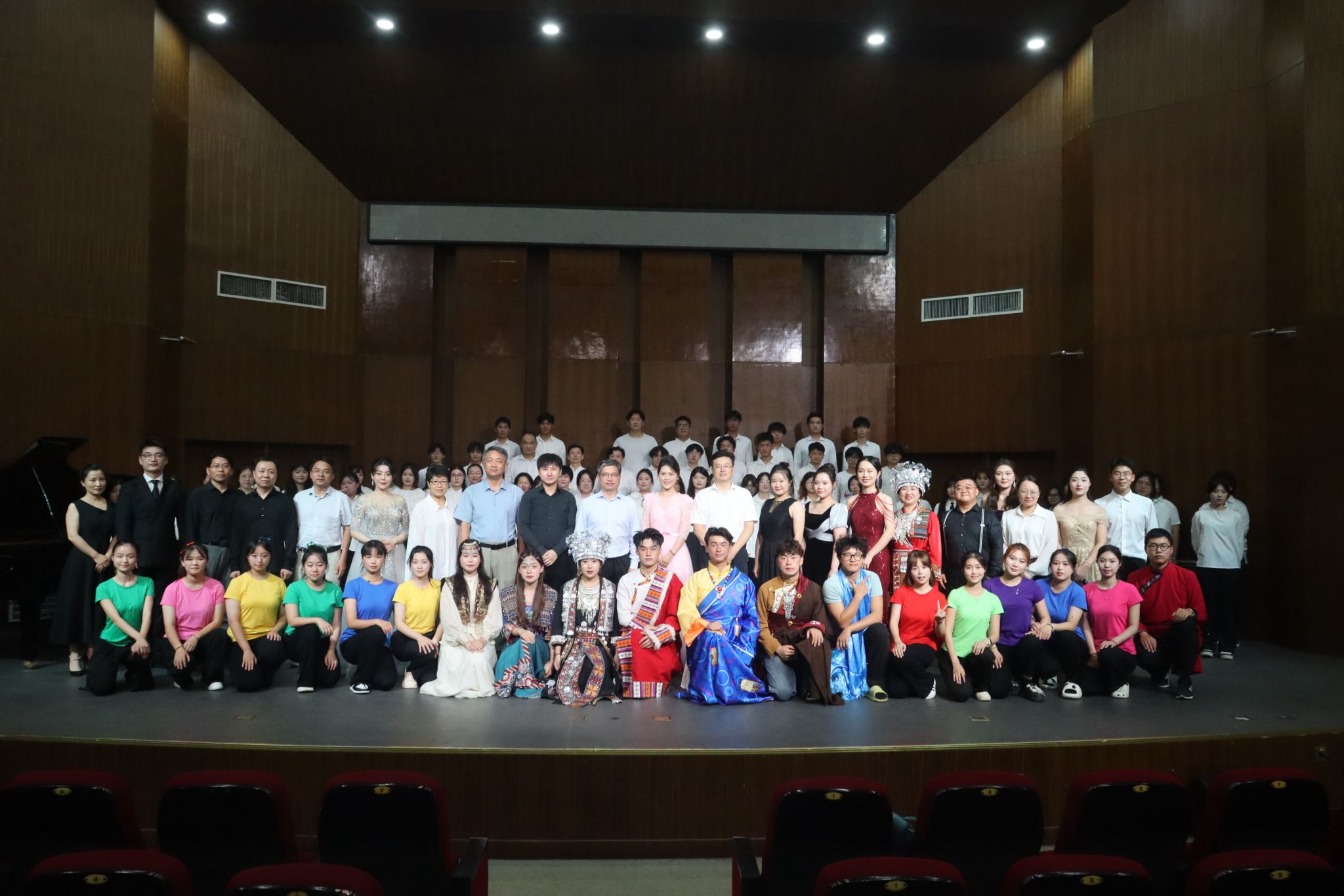 本次活动在民乐合奏《新赛马》中拉开了序幕,原创性与传统性的碰撞,给听者带来更独特的心灵感受。女声独唱《敕勒歌》,展现了我国民族音乐特有的韵味。四手联弹《茉莉花》,以高超的演奏技术表现了我们强大的民族自信。女生独唱《幽兰操》,用歌声表达了中华民族对君子操守的尊崇。室内乐《自由探戈》将观众们带到热情洋溢的阿根廷舞蹈情境中,感受到改革开放以来,新中国展现出来的开放包容的大国风范。原创舞蹈《学子》塑造了新时代的老员工为了实现民族共同繁荣,奔赴草原、建设边疆的事迹,将观众带入五十六个民族一家亲的团结氛围中。长笛单簧管钢琴三重奏《华尔兹舞曲》将紧张的气氛转向更为轻松的氛围。表演唱《弥渡山歌》、《爱我中华》、女声独唱《眺望》、男声独唱《我爱你,中华》倾情表现全国各族人民对祖国母亲的热爱。钢琴独奏《松花江上》、钢琴独奏《又见大别山花开》提醒观众不忘中华民族苦难历史,鼓励大家继往开来,接续前行,创造伟业。全场师生合唱《走向复兴》感染着在场的每一位观众,表达了每一位中华儿女热爱伟大的党、歌唱伟大祖国,迎接中华民族伟大复兴的强烈愿望。在经久不息的掌声与欢呼声中,本次活动落下帷幕,华银峰和部分领导上台与演员合影留念。
