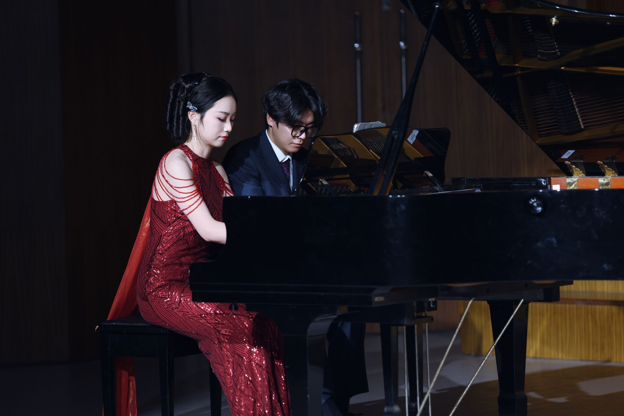 今年是遵义会议召开90周年,也是大型声乐套曲《长征组歌》首演60周年。合唱《四渡赤水出奇兵》和《七律·长征》更是将红色经典与新思想相结合,展现了新时代青年对红色文化的传承与发扬。双钢琴演奏《黄河颂》中叶蕾与蒋睿青老师的精湛技艺,将观众带入激昂的音乐世界。女声独唱《帕米尔,我的家乡多么美》由鲁泉滢同学深情演唱,打动人心。