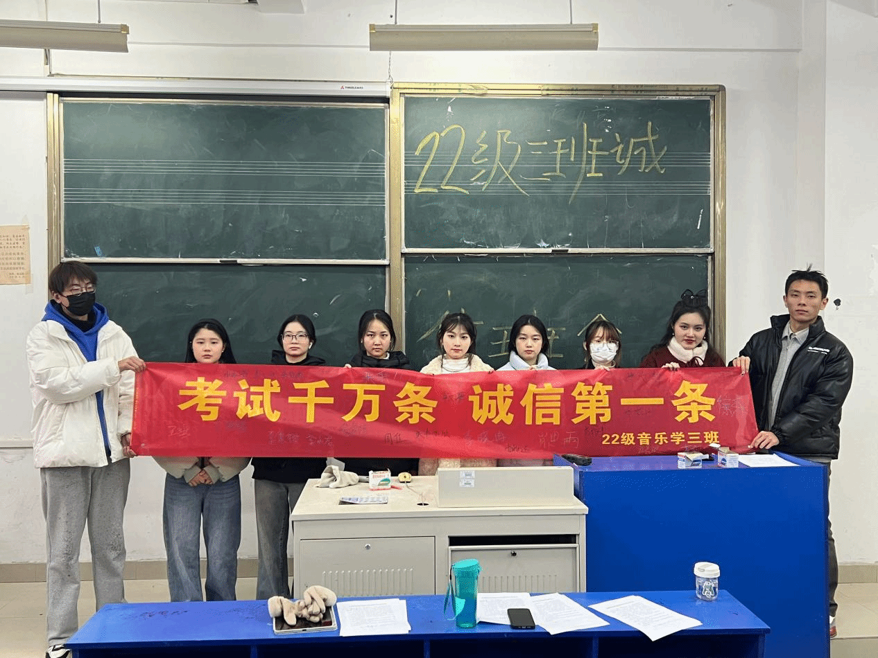 12月28日,辅导员召开诚信考试主题班会。班会上,辅导员强调了考风考纪的重要性,带领同学们回顾了《员工手册》中对考试违纪行为的认定及处罚细则,为同学们敲响了诚信考试的警钟。