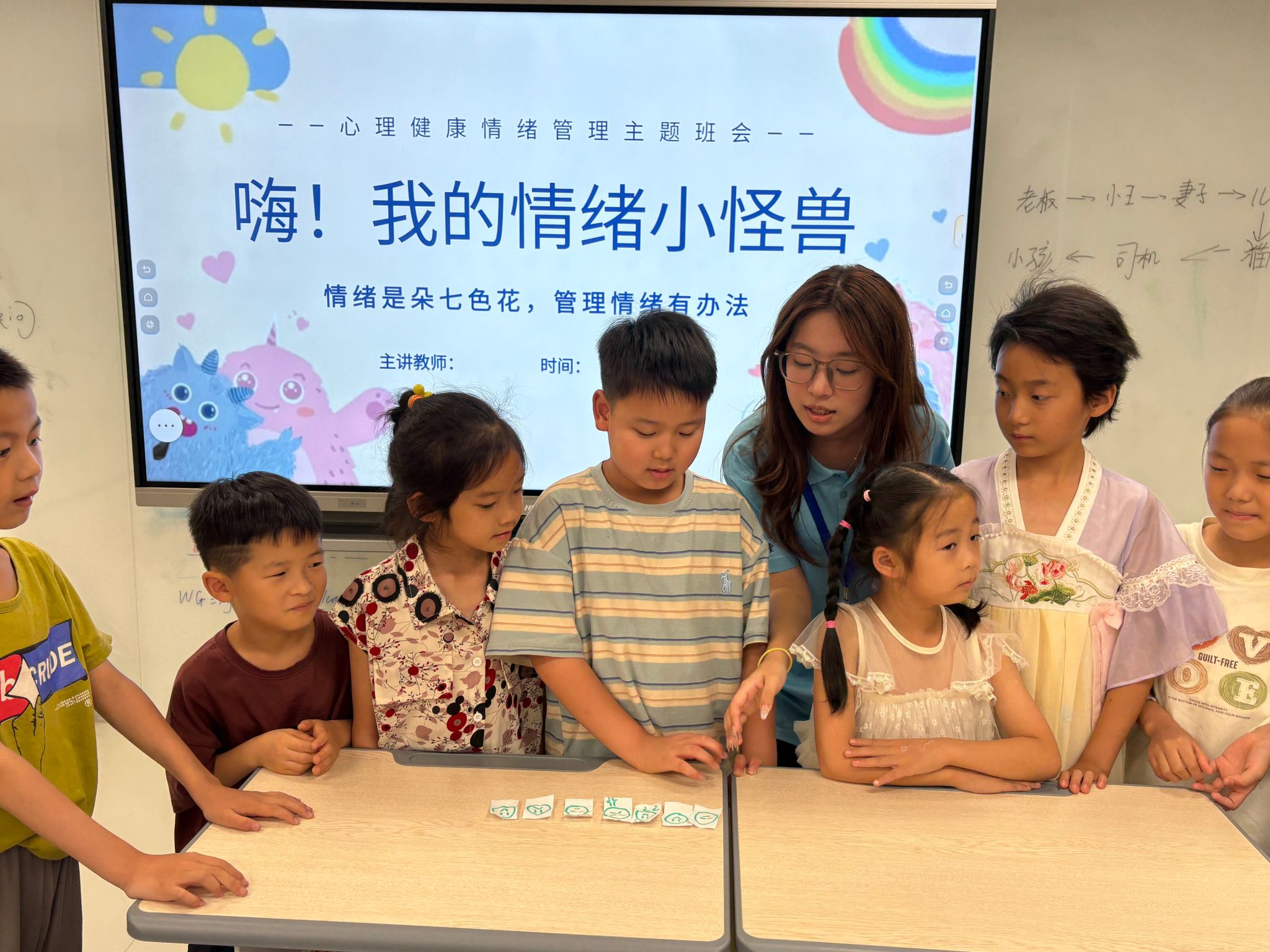 针对留守儿童群体,“小先生”设计“情绪卡片”活动:孩子们抽取画有表情的卡片,分组讨论应对策略。一名男孩分享:“看到小伙伴难过,我就学老师把‘安慰糖果’分给他”——活动将情绪管理转化为生活技能,强化社会情感学习。