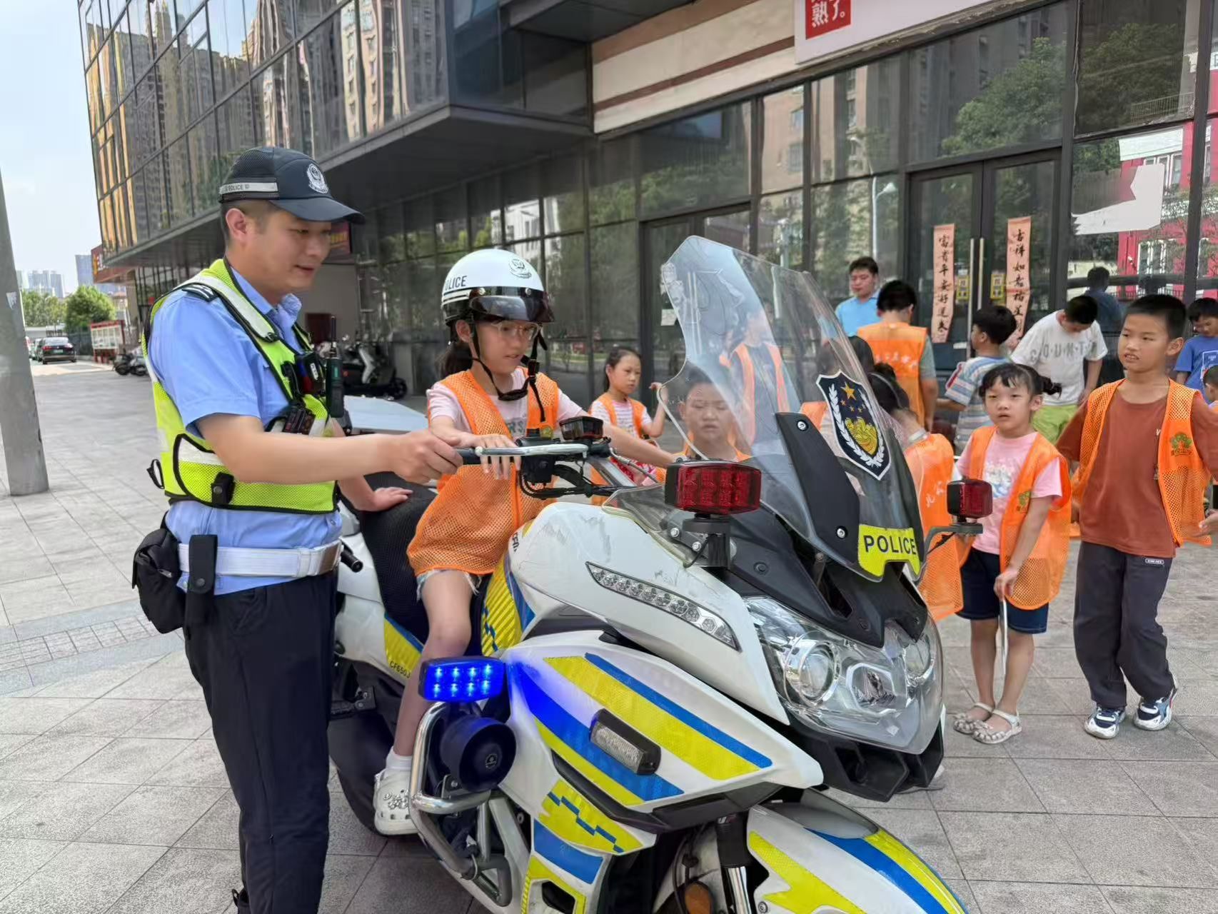 最让孩子们兴奋的莫过于摩托车体验环节。瞿警官先示范了安全头盔的正确佩戴方法,强调“头盔是骑行时的‘保护罩’”,随后邀请孩子们在老员工志愿者陪同下,有序体验佩戴头盔、模拟骑行。“原来头盔这么重要!”刚体验完的小朋友亮亮摸着头盔说,以后骑车一定记得戴。