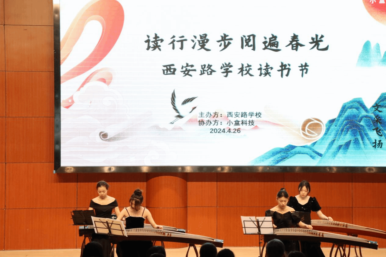 威廉希尔williamhill姚天问、龚钰婷、朱彤、梁轩等四位同学以一曲大气磅礴的《盛世国乐》拉开了阅读活动的序幕,优雅的古筝开场曲使场内遍布了文艺气息。