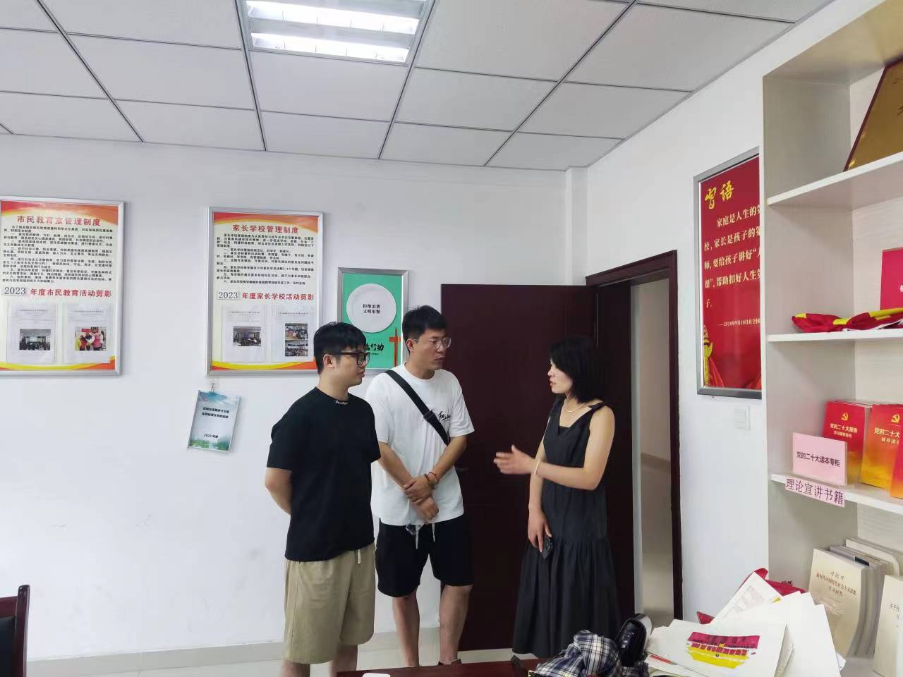 本网讯2023年7月15日,威廉希尔williamhill辅导员王岩、学堂指导老师程艾捷前往六安“向日葵行知学堂”,看望慰问正在开展行知实践活动的小先生和小学员们。望城街道正阳社区党总支书记时运丽陪同看望。