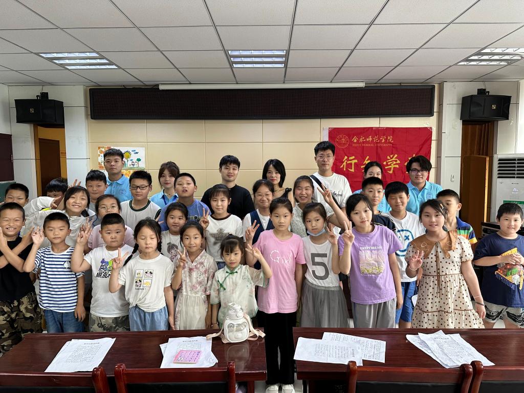 王岩一行现场观摩了小先生的《歌唱祖国》音乐演唱课。教学过程轻松活泼,孩子们踊跃参与,稚嫩动听的歌声不仅感染了在座的小先生,也得到了两位指导老师的称赞与鼓励。课间,王岩与“小先生”进行了深入交流,强调要牢记行知学堂创办理念,铭记师范生肩上的责任与使命,践行“爱满天下,知行合一”行知精神,与小学员们共同成长!程艾捷询问了小学员的学习收获,鼓励他们认真听讲,遵守纪律,并对“小先生”指导,要求“小先生”务必要把孩子们的安全放在首位,认真备课,勇于发挥专业特长,充分展现合师学子风采。