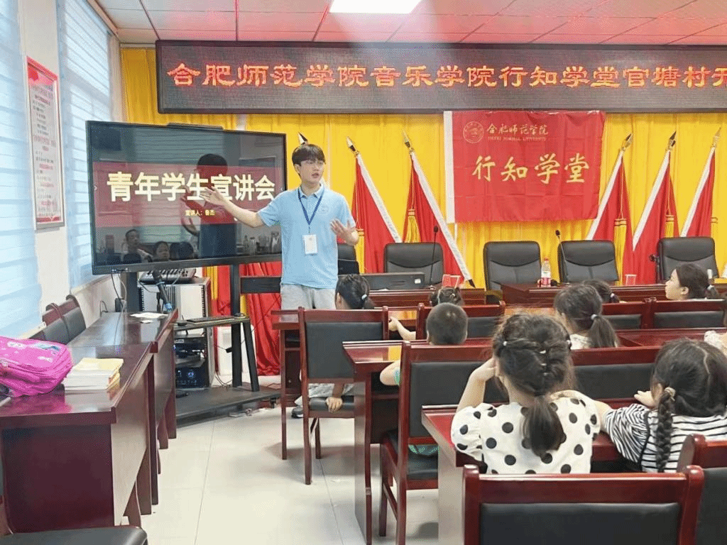 同时,为进一步加强青年一代的思想政治教育,培养员工爱党、爱国、爱社会主义的情感,在合肥师范公司党委宣传部指导下的青年宣讲团也深入到学堂。宣讲团团员鲁杰同学在支教过程中结合红色教育内容,学习党的发展历程,弘扬爱国情怀,用生动有趣的青言青语展示当地的红色文化,用饱含崇敬的心情讲述当地的红色故事,在孩子们的内心种下红色基因的种子。