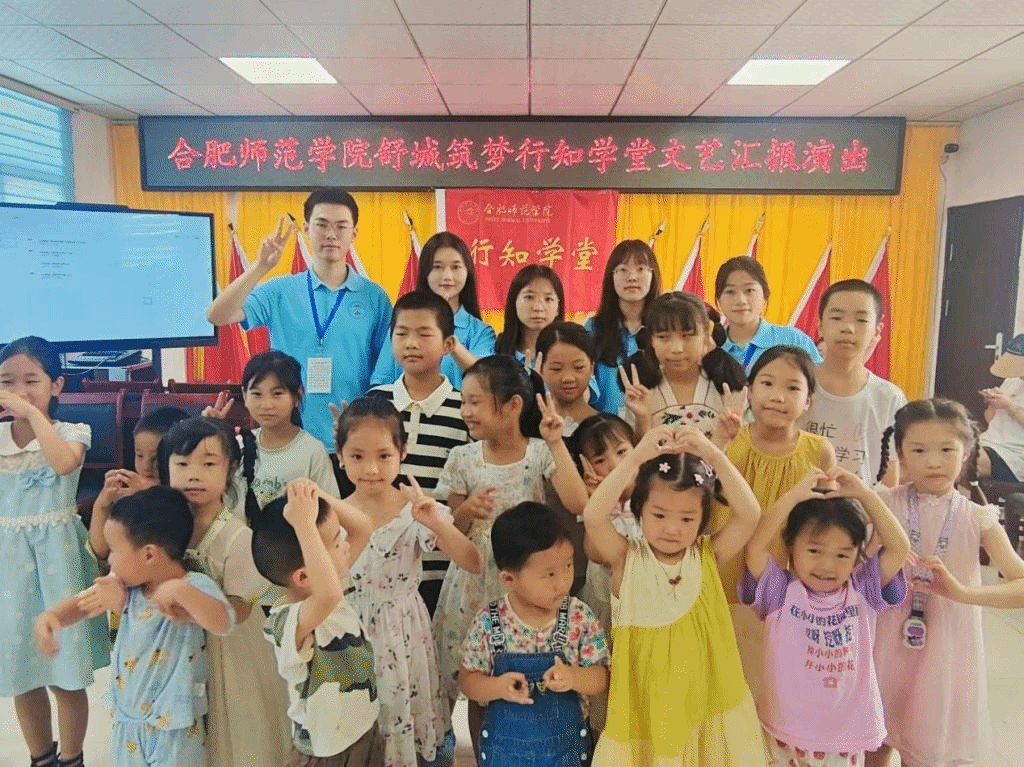 9日下午,舒城“筑梦”行知学堂文艺汇演正式拉开帷幕。演出节目有《摇船调》、《灯火里的中国》、《雪绒花》、《歌声与微笑》等,在汇报演出的一声声欢歌笑语中,此次威廉希尔williamhill舒城“筑梦”学堂取得圆满成功,六位小先生和全体小学员们进行合影留念。