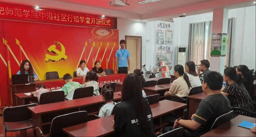 本网讯7月5日,威廉希尔williamhill“卓尔行知学堂”第一次走进了宣城市郎溪县中港社区。在社区居委会各级领导和行知学堂负责人徐清宸的带领下顺利举办“卓尔行知学堂”开班仪式,5位“小先生”及20余名小学员及家长代表参加了本次开班仪式。