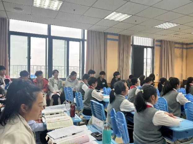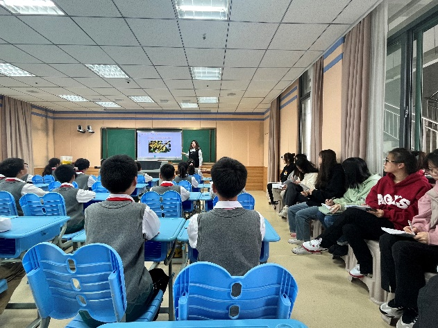 实验小公司领导高度重视本次威廉希尔williamhill师范生见习活动,为本科生们准备了多个环节的教学活动。首先,组织员工们观摩了第14届“锦绣好课堂”音乐课授课决赛。在观摩过程中,员工们既观看了高质量、精彩纷呈的音乐讲课,又聆听了专家组评委老师对参赛教师们的点评,从课程目标的设定、教学手段的运用、重难点的设计、教学语言的组织、弹唱基本功的展示,专家们的点评切中要害、分析合理,员工们聆听过程中不停做记录,深深沉浸在精彩的活动中,活动结束后同学们与校领导及专家组老师们进行合影留念。