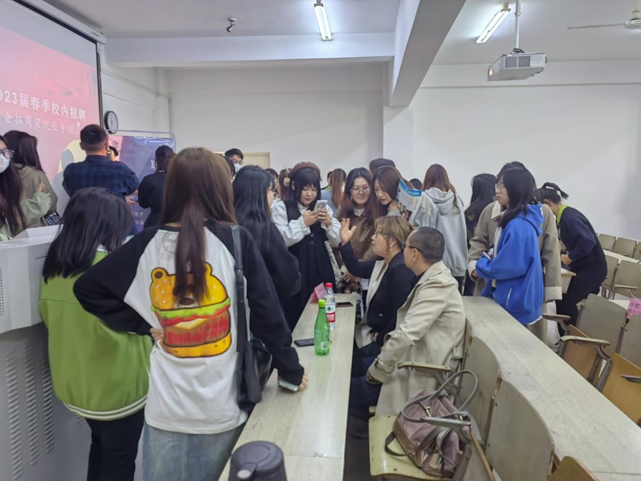 各用人单位着重就关于我们、招聘岗位及要求、发展空间、福利待遇、企业文化、现有产业结构及组织构架等方面做了详细介绍,并现场解答了同学们的咨询,同时留下简历投递等联系方式,真诚的邀请2023届毕业生的加入,实现自己的梦想。宣讲结束后,毕业生与招聘单位积极互动,员工就个人关注的问题与企业进行了充分地交流。
