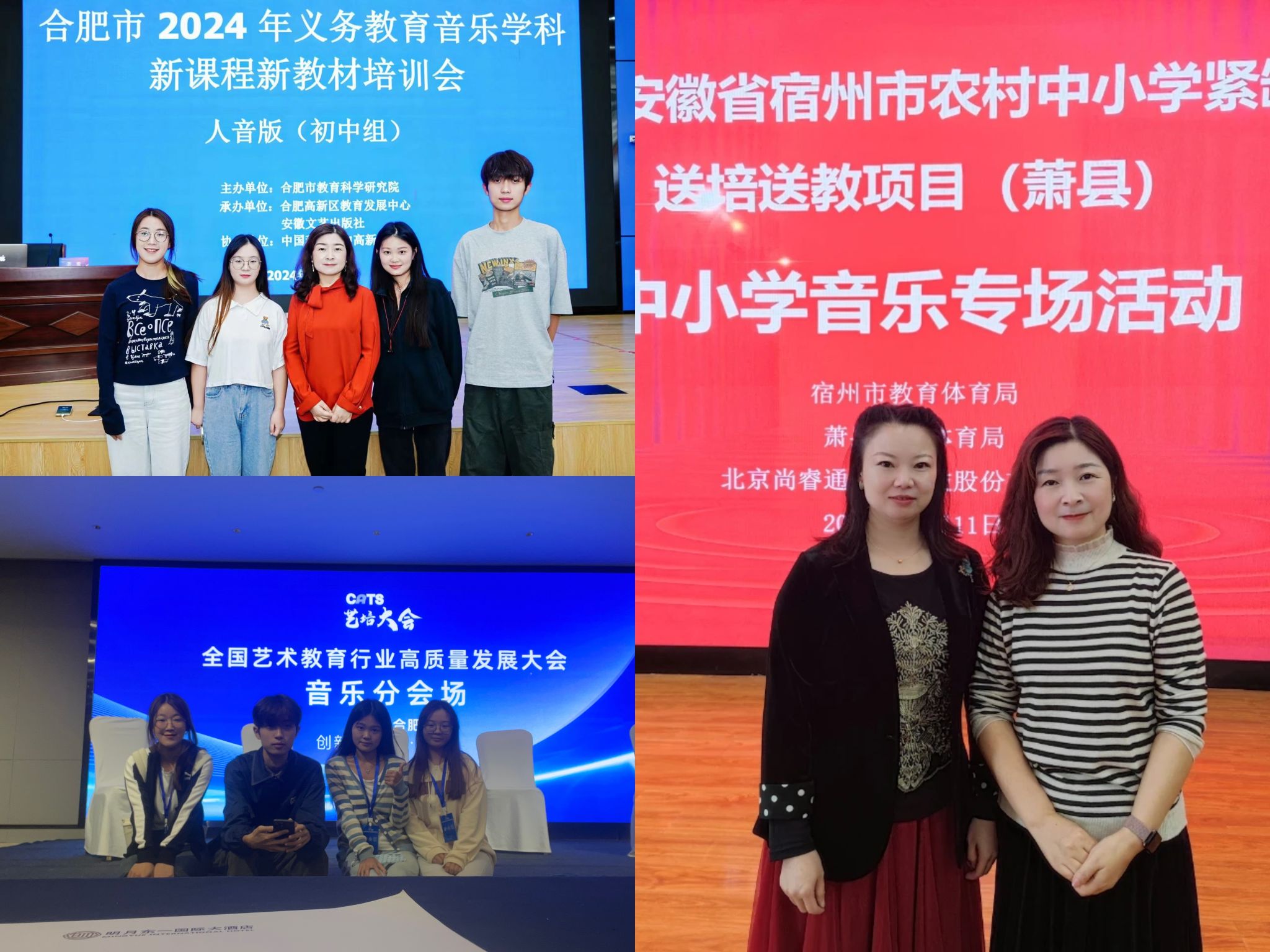 除了集体备课,磨课,上课,实习小组还跟随刘双宁参加了合肥市义务教育音乐学科新课程新教材培训会、宿州市农村紧缺学科送培送教活动、全国艺术教育行业高质量发展大会等活动。作为实习生,这些学习经历是非常难得的。通过参加这些活动,实习生们对教育行业的现状有了更加清晰的认知,这对实习生们未来的毕业论文、公司产品、科研等提供了很好的视角和思路。
