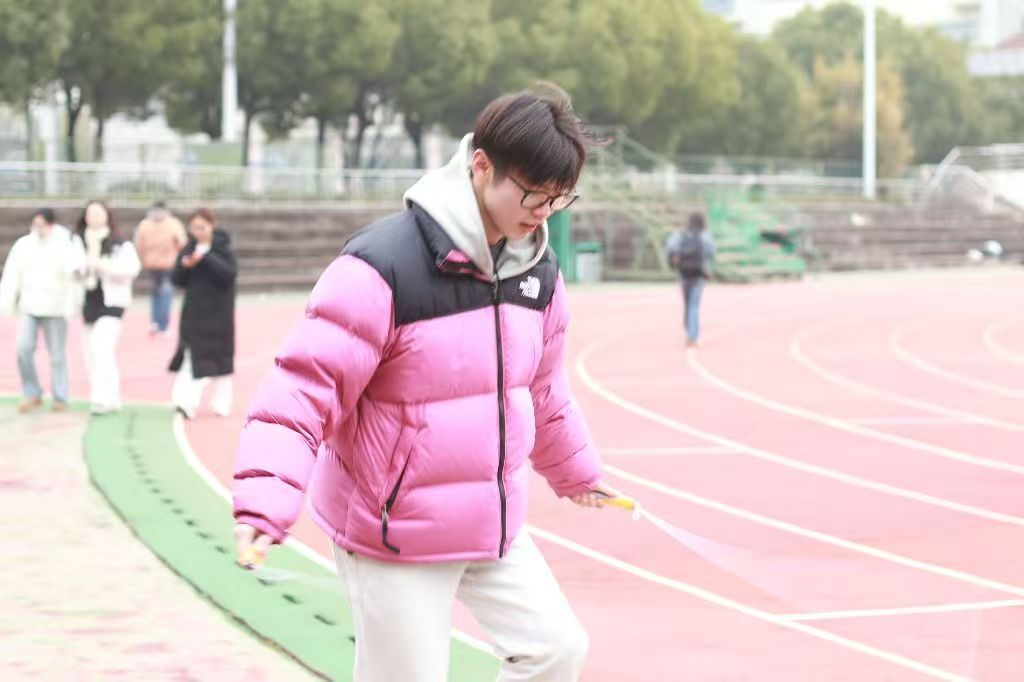 比赛开始前,参赛选手们早早来到操场进行热身,一个个摩拳擦掌,跃跃欲试。随着裁判一声令下,比赛正式拉开帷幕。个人竞速王环节中,选手们身轻如燕,手中的跳绳快速旋转,发出呼呼的声响,脚尖与地面的触碰仿佛在演奏一首激昂的乐章,展现出了高超的跳绳技巧和顽强的拼搏精神。团队车轮战更是将现场气氛推向了高潮。各队伍团结协作,配合默契,现场加油声、呐喊声此起彼伏,整个操场成了一片欢乐的海洋。
