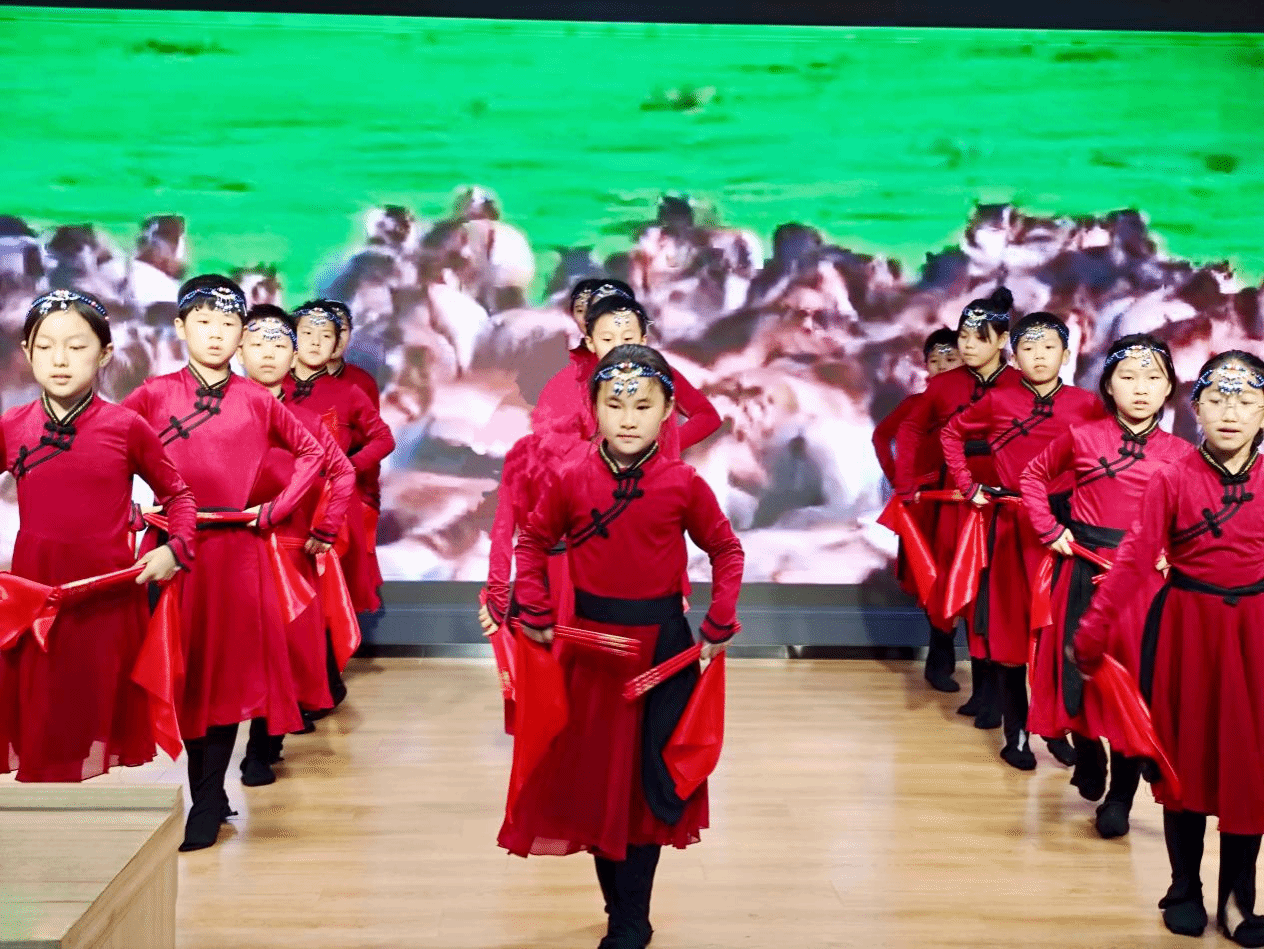 汇演紧扣“民歌传韵·匠心共融”主题,聚焦国家级非物质文化遗产——安徽民歌的传承实践。欢快热烈的蒙古族舞蹈《白马》作为开场舞瞬间点燃现场气氛。随后,小学员们倾情演绎了安徽民歌《凤阳变成金凤凰》《八月桂花遍地开》等经典曲目,成为整场演出的核心亮点,生动立体地展现了安徽民歌的独特魅力和深厚文化底蕴。
