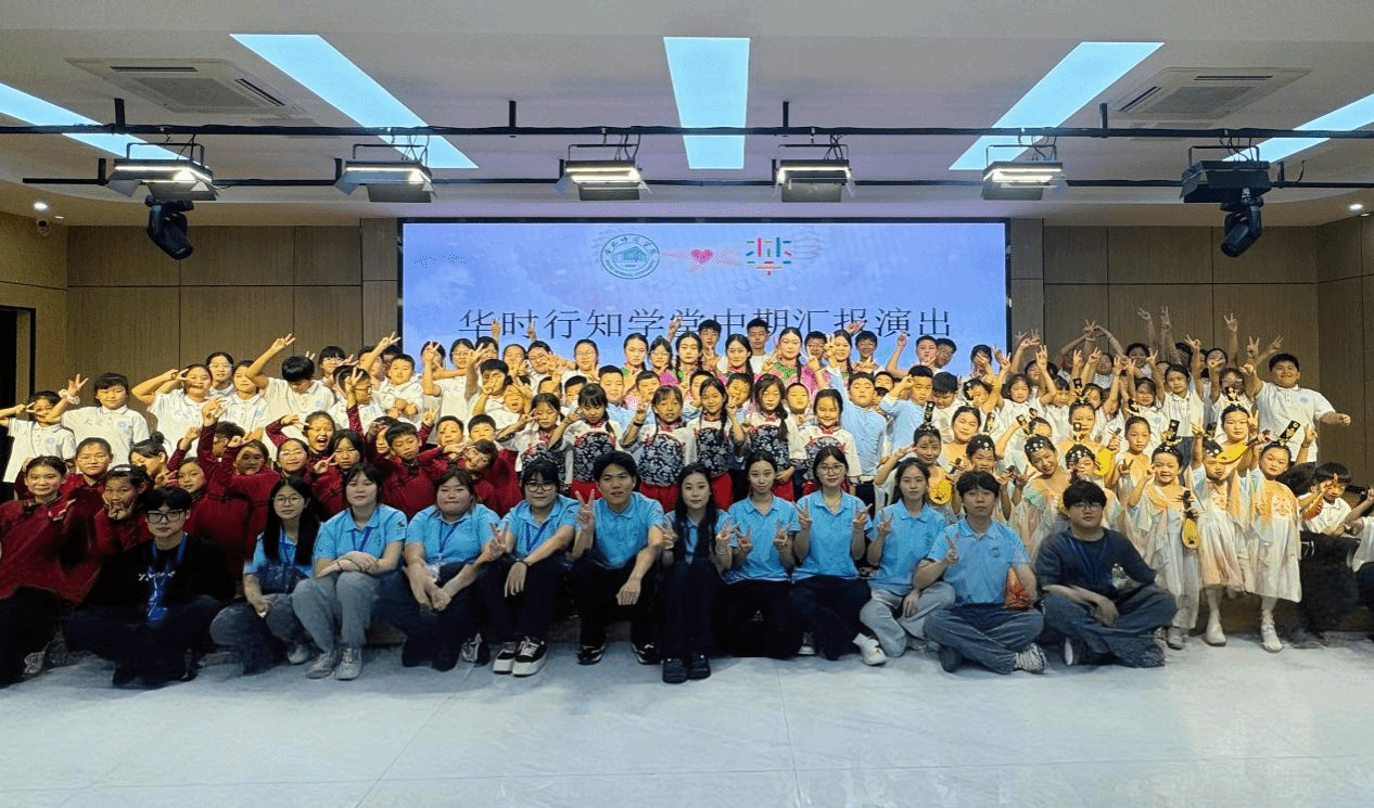 8月1日,威廉希尔williamhill华时行知学堂中期汇报演出在阜阳市颍泉区华时公司报告厅举行。华时公司党支部书记邵伟伟、小学部副董事长时莎莎总务处主任罗妮、行知学堂小先生和小学员们参加了此次活动。